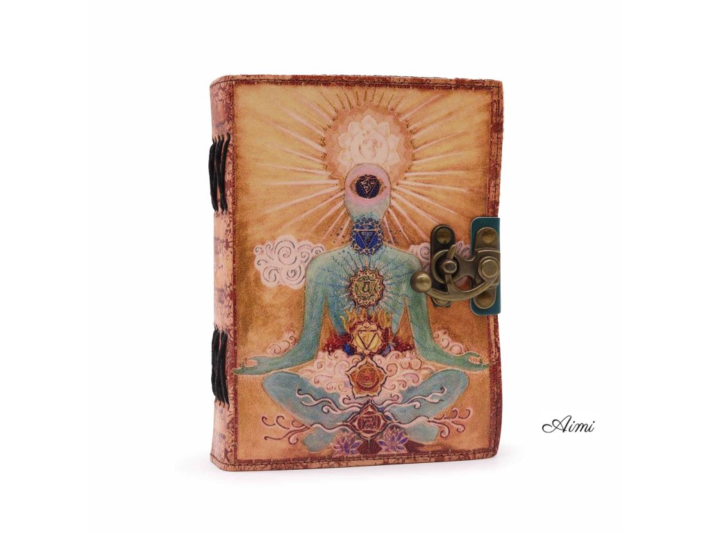 Ponúknite svojim zákazníkom jedinečný, ručne vyrobený predmet s naším koženým zápisníkom "Budha Sedem Čakier" s Okrajom.