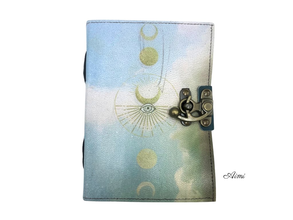 Kožený Zápisník „Fázy Mesiaca“ s Okrajom (12.5cmX17.5cm)