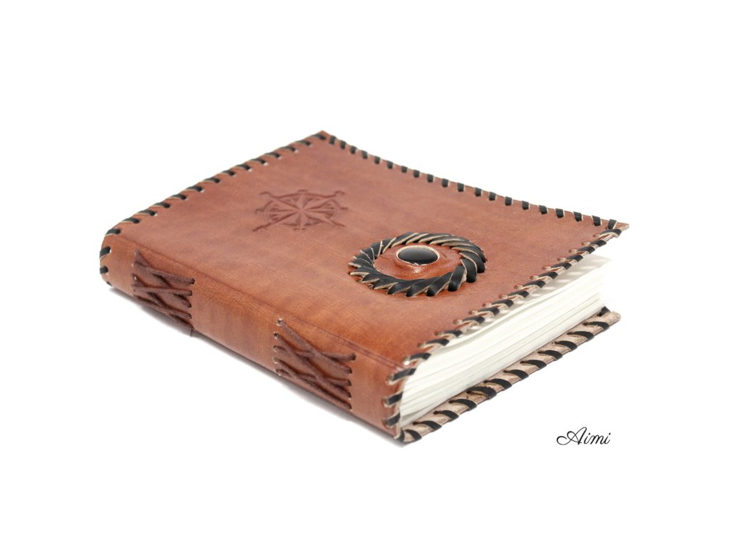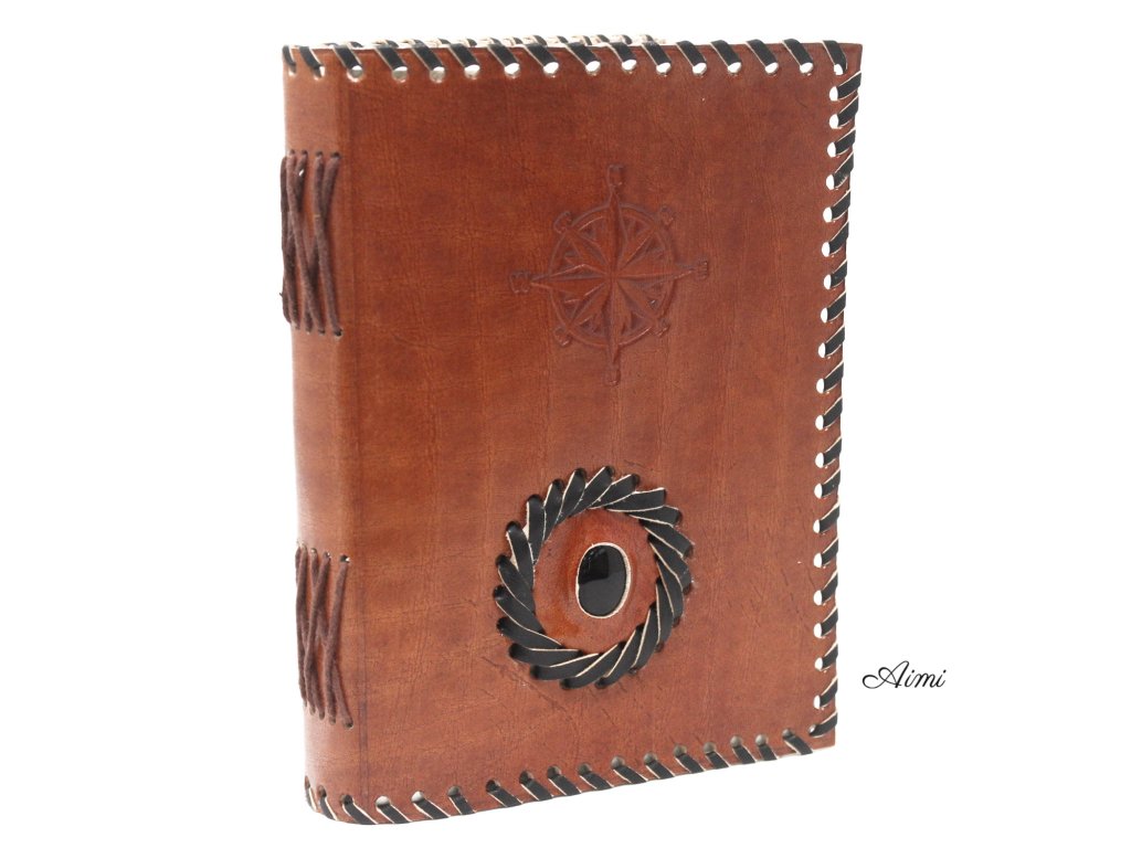 Kožený Zápisník -Čierny Onyx a Kompas 17x12 cm