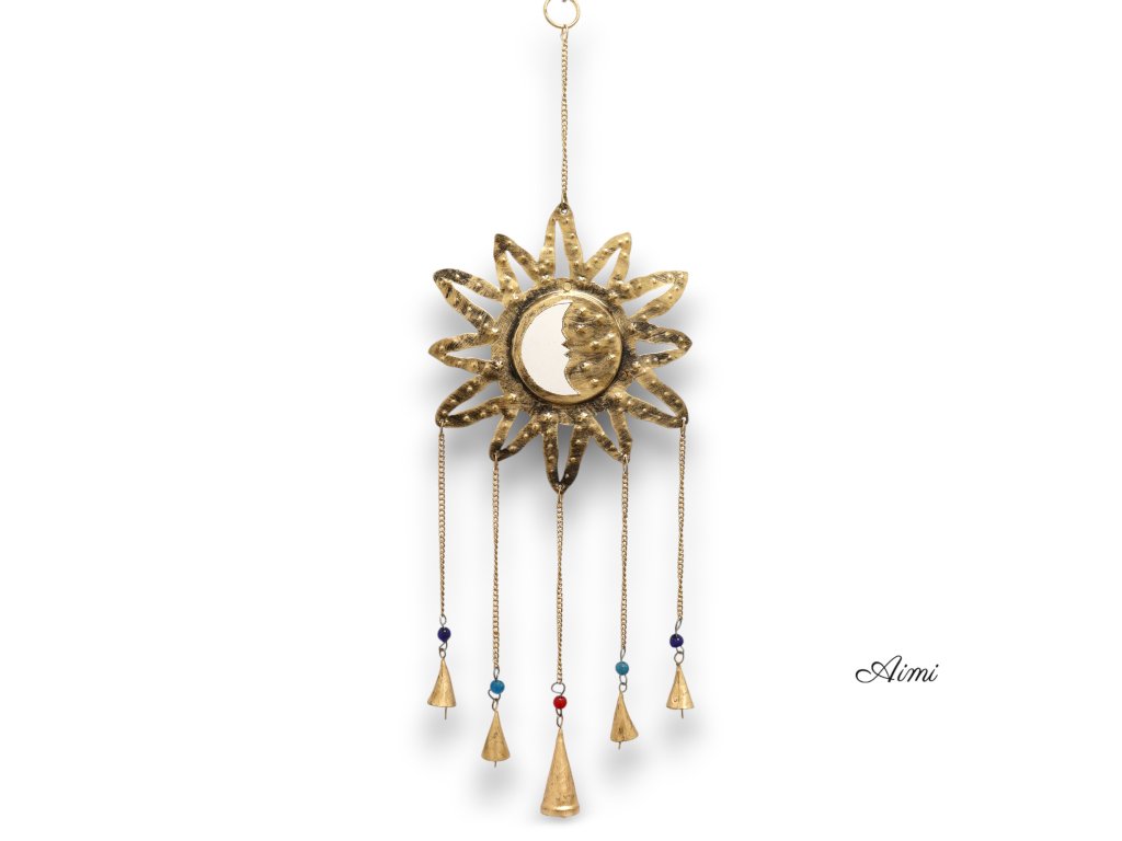 Indická Zvonkohra - Malá Slnko Mesiac Zrkadlo 5 Zvončekov - 12x65cm
