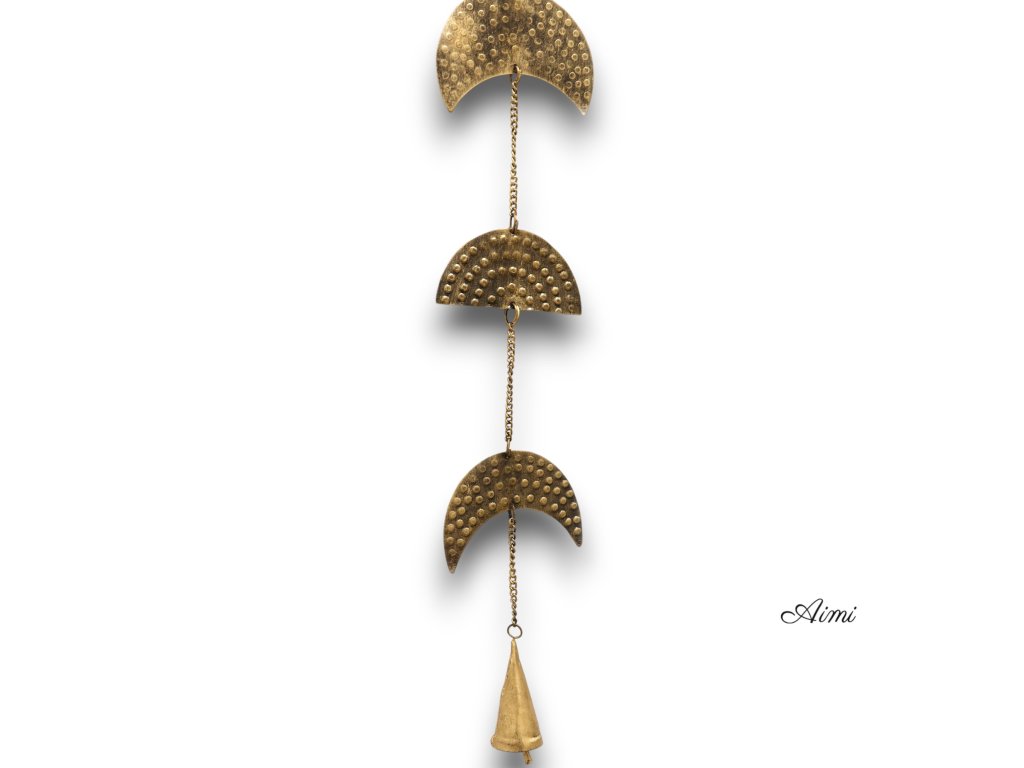 Indická Zvonkohra - Mosadzné Fázy Mesiaca so Zvončekom - 25 cm