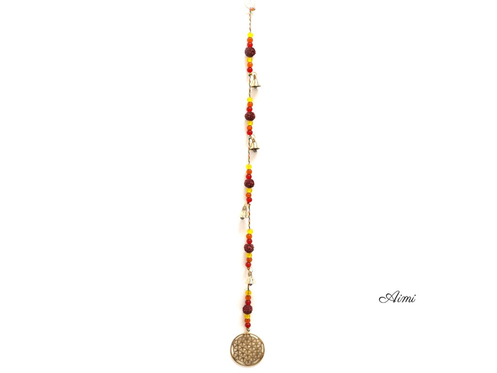 Indická Zvonkohra - Mosadzný Kvet Života s Korálkovým Zvončekom Rudraksha - 6 x 63 cm