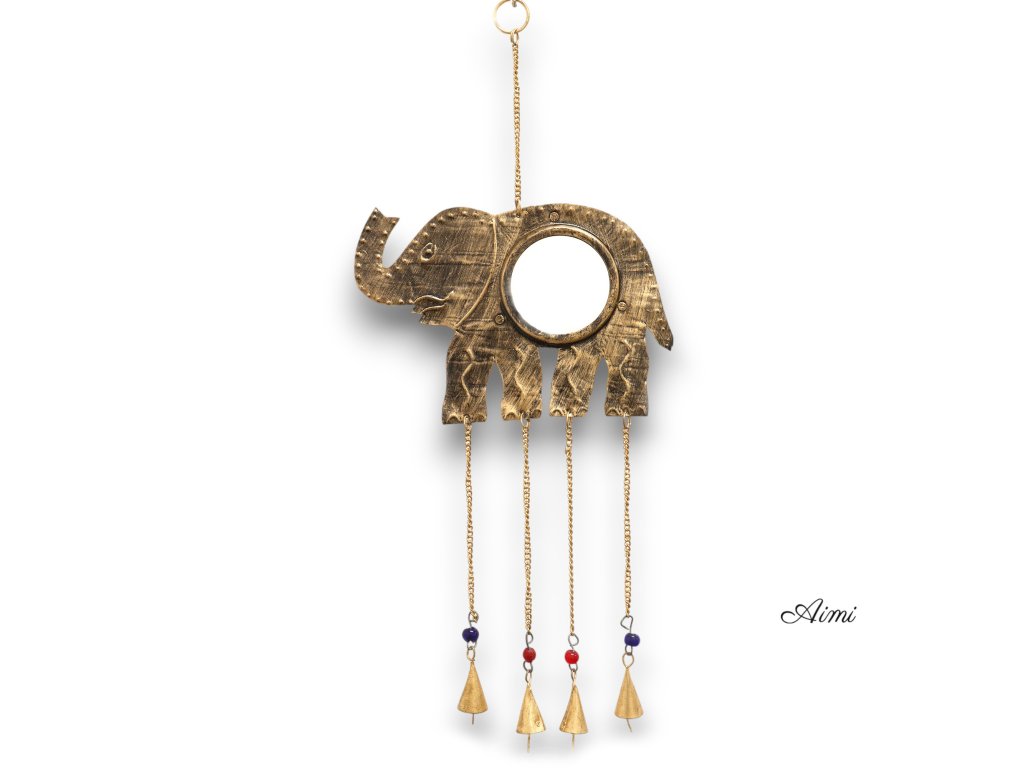 Indická Zvonkohra - Zrkadlo so Sloňou Nohou 4 Zvončeky - 24x60cm