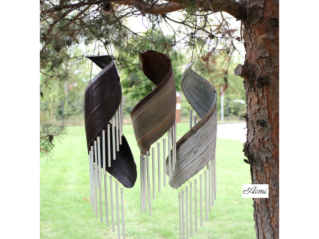 Tieto zvonkohry sú ručne vyrobené zo skutočného kokosového listu na Bali, ktorý sa dá pri zahriatí tvarovať a ohýbať, Ideálne do interiéru, ale možno ich použiť aj na záhrade alebo terase, kde zvonkohra môže jemne hrať vo vánku.