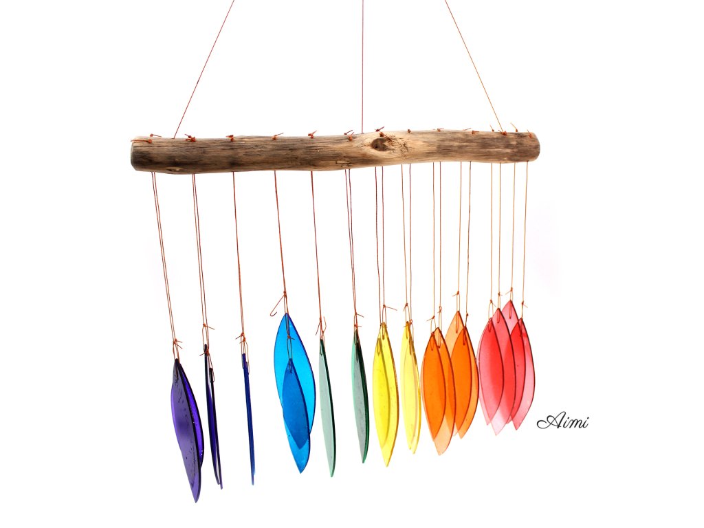 Tieto sklenené zvonkohry z naplaveného dreva môžete jednoducho zavesiť; Vhodné do interiéru alebo exteriéru