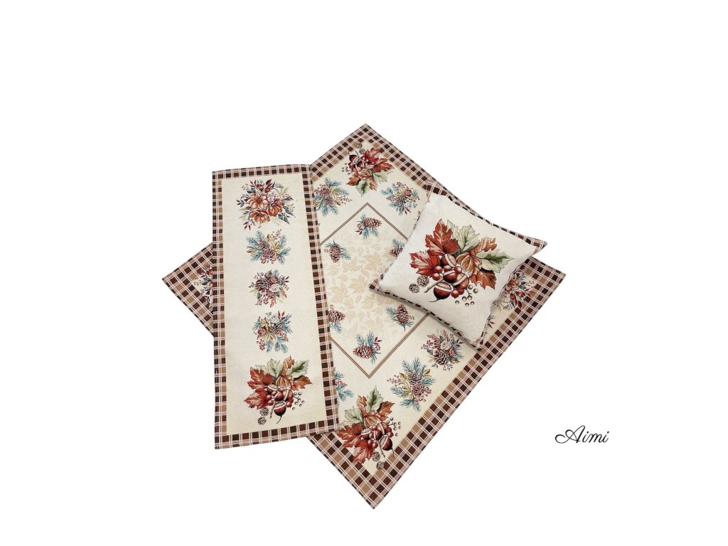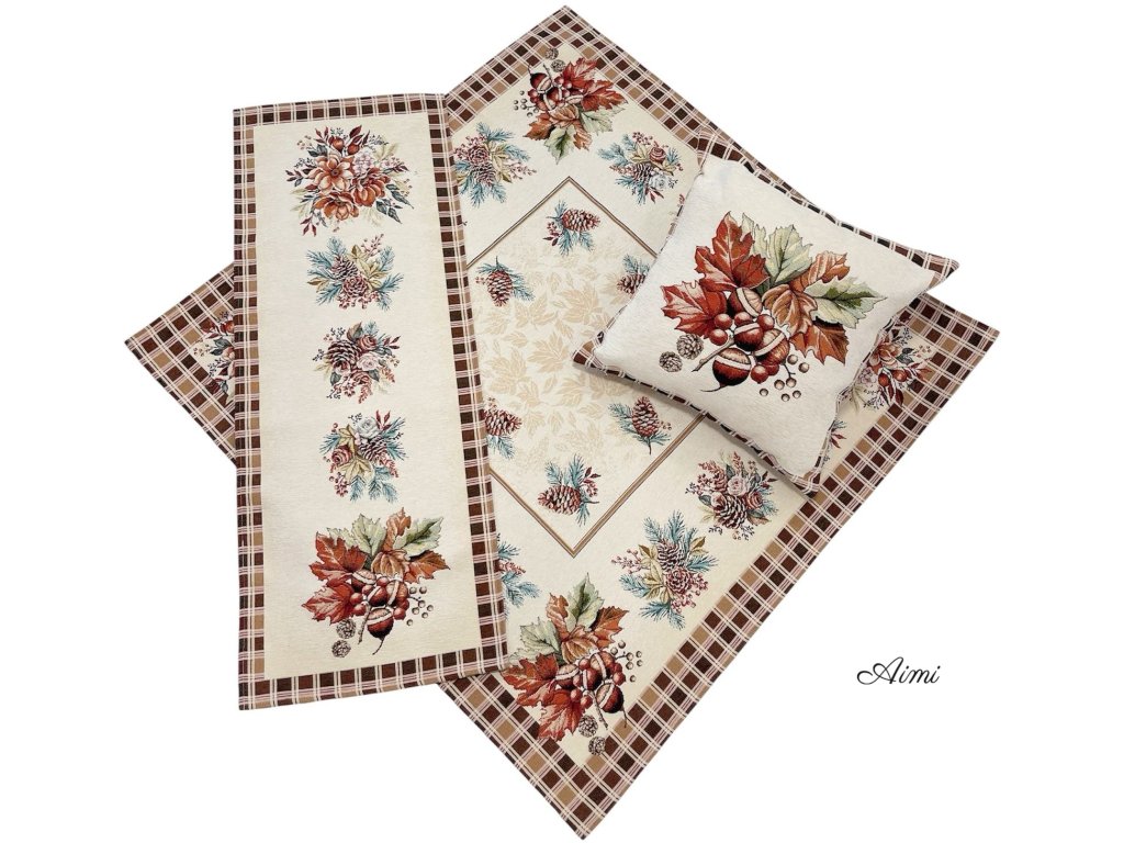 Krásny gobelínový obrus s jesenným motívom. Vyskladajte si svoju sadu z tejto krásnej Gobelínovej súpravy, ktorá pekne dotvorí Váš interiér. Jednotlivé rozmery alebo obliečku si vyberte z dostupných variantov. Gobelínové obrusy sa vyznačujú svojou dlhou životnosťou a kvalitným prevedením.