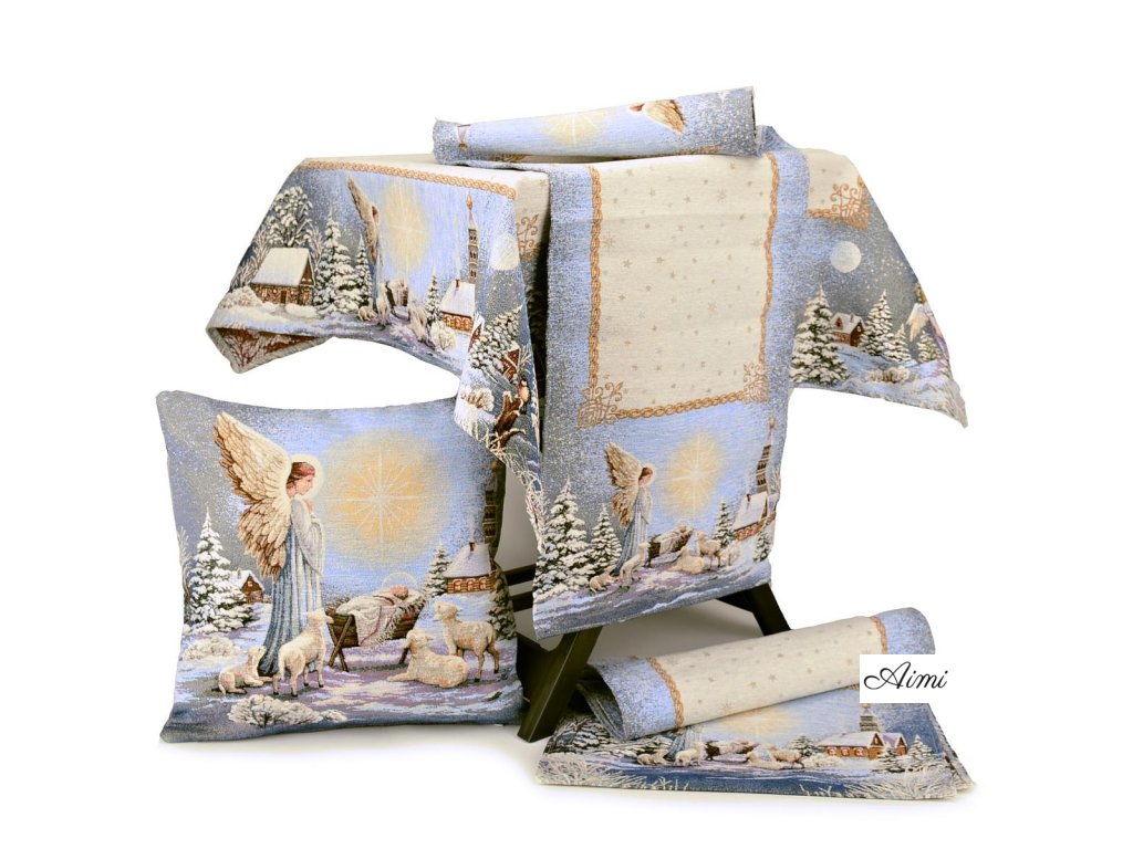 Gobelínový Chenille Vianočný obrus - rôzne rozmery a obliečka na vankúš - Anjel a Ježiško