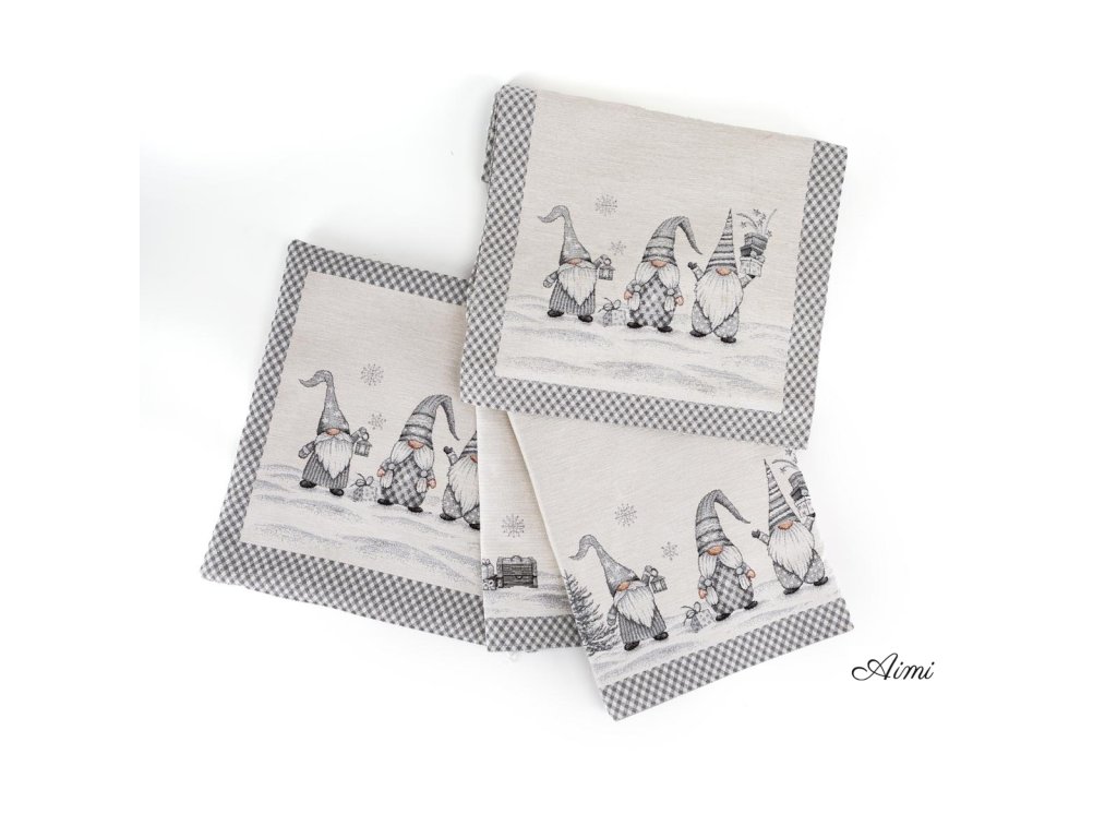Gobelínový Vianočný obrus Chenille - rôzne rozmery a obliečka na vankúš - TRAJA TRPASLÍCI 1279