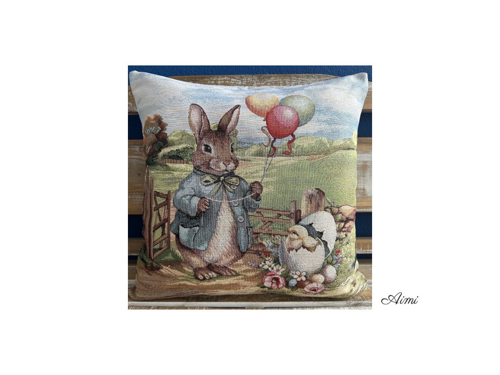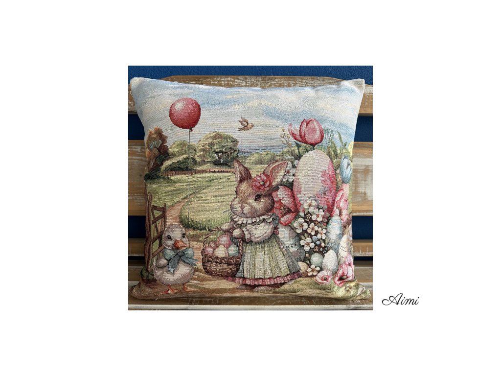 Veľkonočný Gobelínový obrus 1422 rôzne veľkosti a Obliečka na vankúš s veľkonočným motívom - VEĽKONOČNÁ ZAJAČIA KRAJINKA