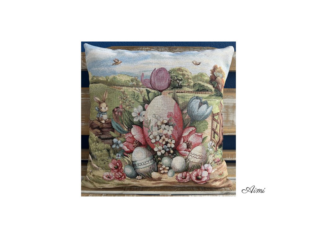 Krásny Veľkonočný gobelínový obrus, ktorý má Veľkonočný motív. Vyskladajte si svoju súpravu z dostupných veľkostí obrusov a obliečky na vankúš a zútulnite si svoju domácnosť.