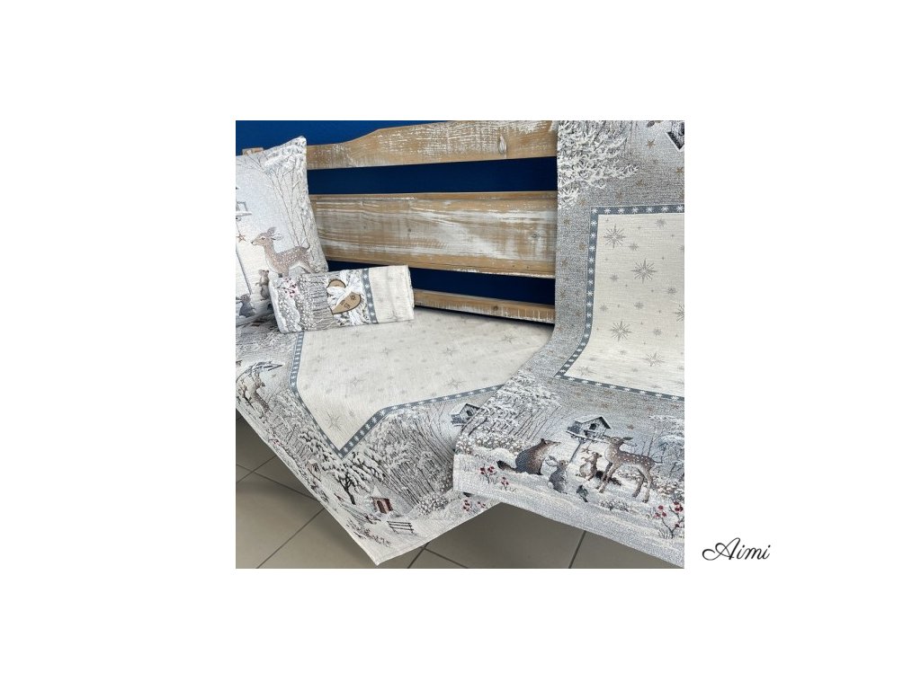 Gobelínový Chenille Vianočný obrus - rôzne rozmery a obliečka na vankúš - Zimná krajina ZVIERATIEK