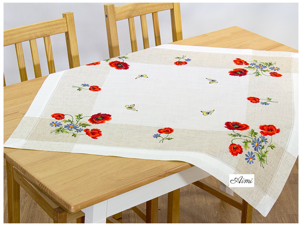 Vyšívaný JARNÝ obrus rôzne veľkosti - Červené maky 5536