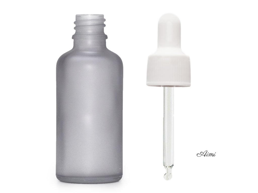 100ml Fľaška z Matného Šedého Skla s Bielou Pipetou