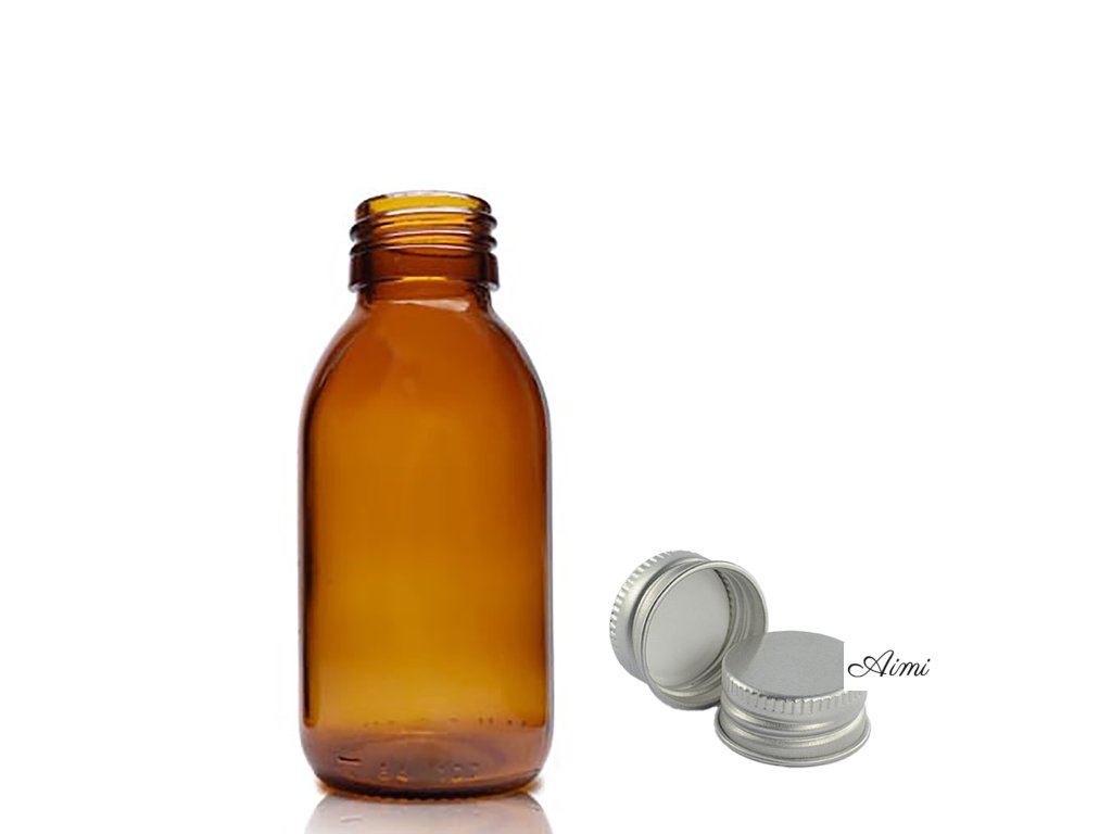 100ml Jantárová Sklenená Fľaša s Hliníkovým Uzáverom