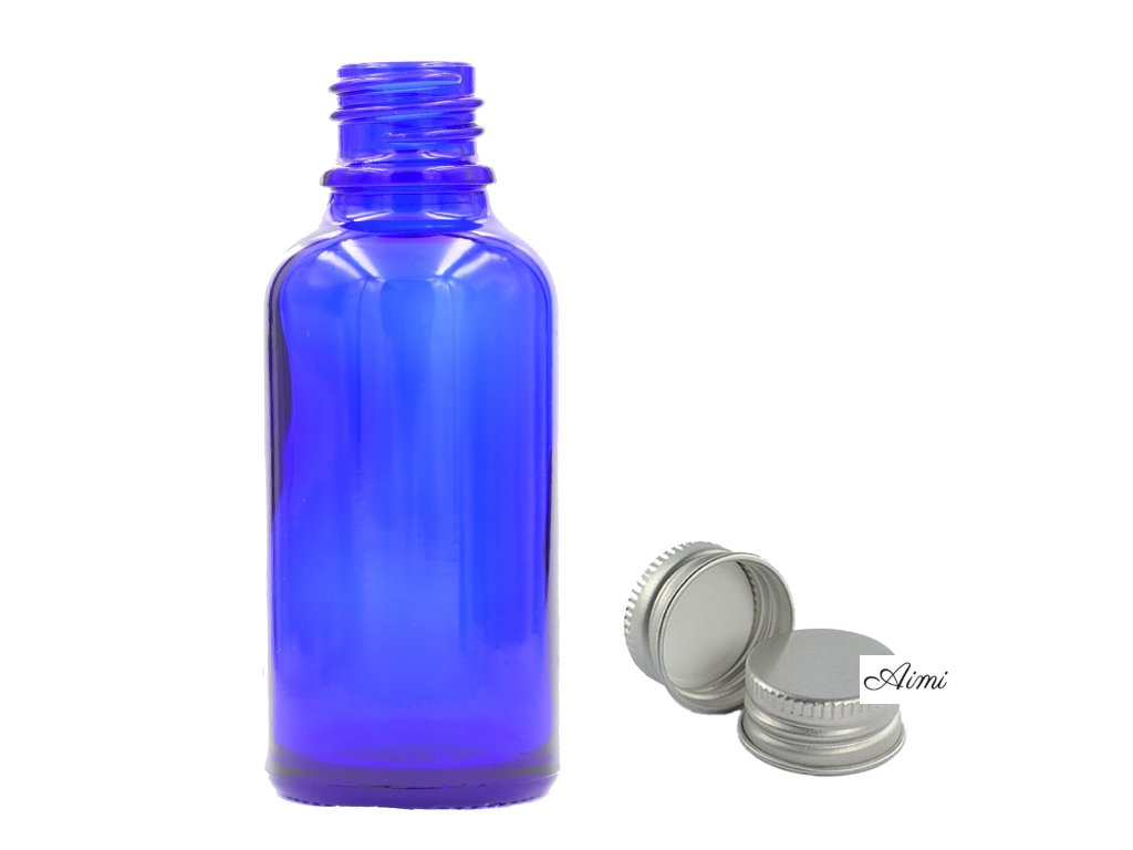100ml Modrá Sklenená Fľaška s Hliníkovým Uzáverom