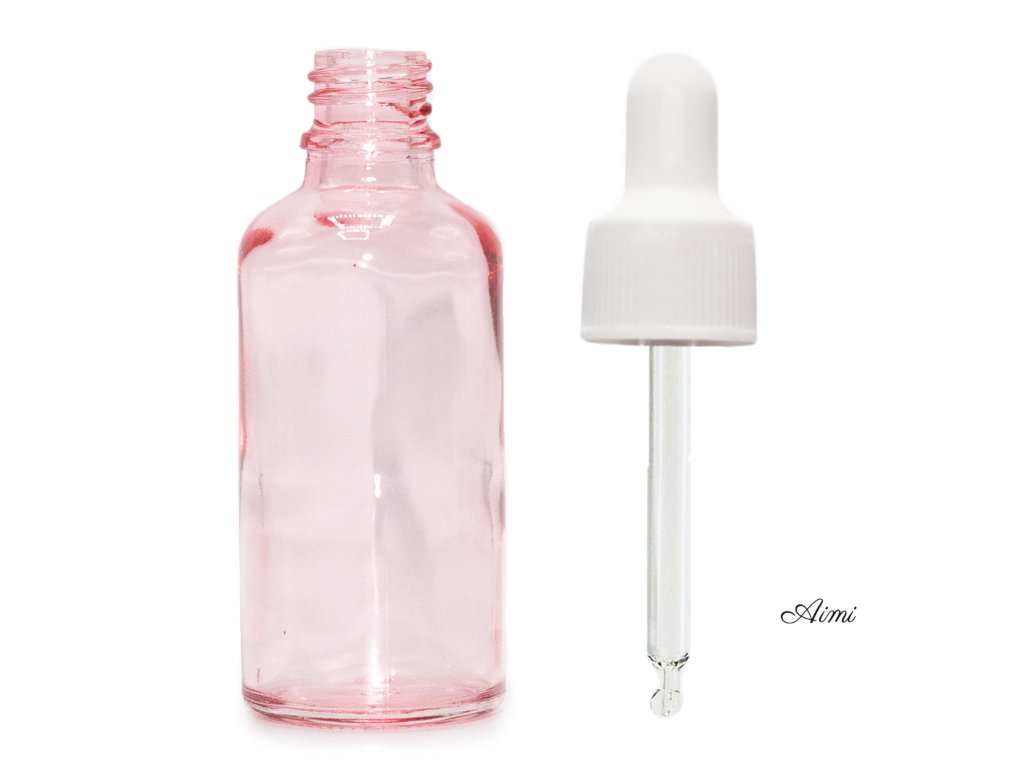 100ml Ružová Sklenená Fľaška s Bielou Pipetou