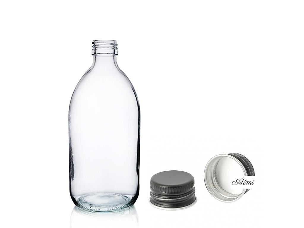 150ml Lieková Fľaška z Číreho Skla s Čiernym Hliníkovým Uzáverom