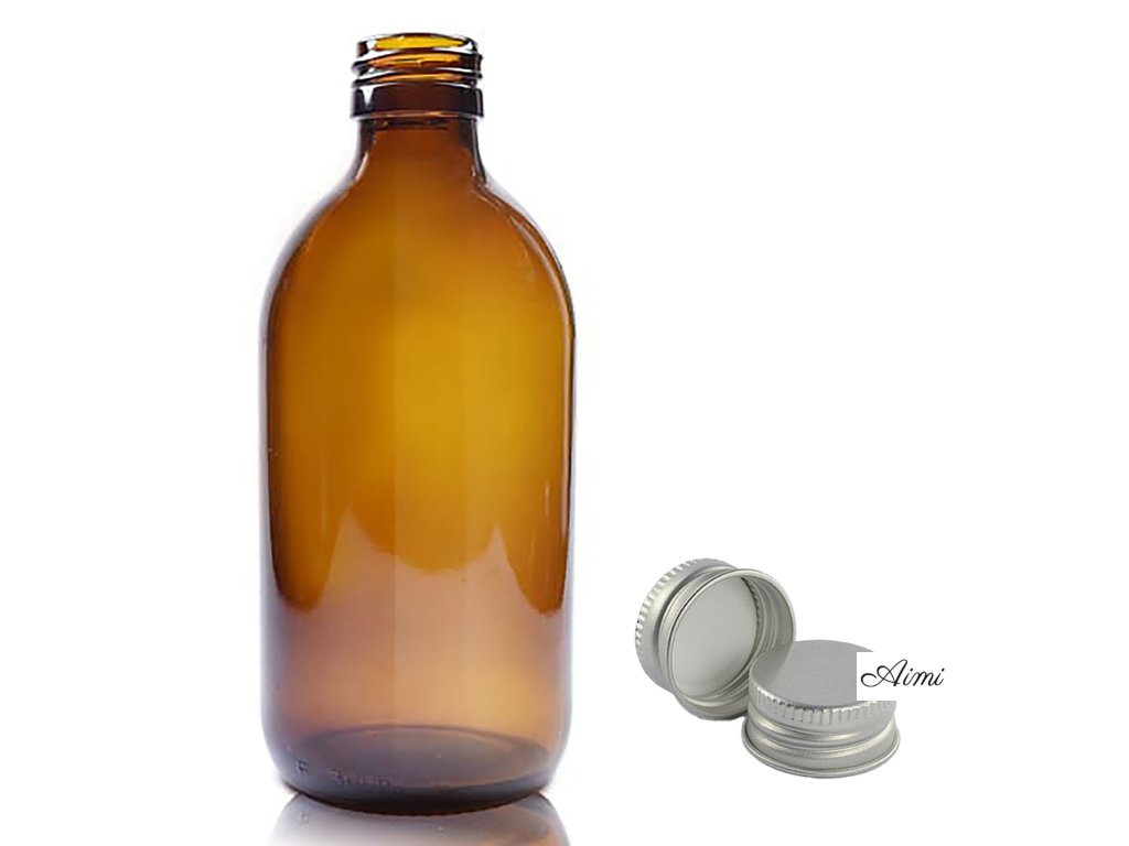 300ml Jantárová Sklenená Fľaša s Hliníkovým Uzáverom