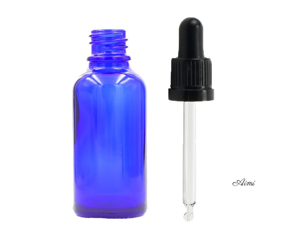 50ml Modrá Sklenená Fľaška s Kvapkadlom s Čiernou T/E Pipetou