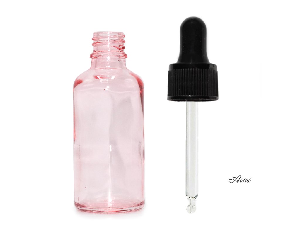 50ml Ružová Sklenená Fľaška s Čiernou T/E Pipetou