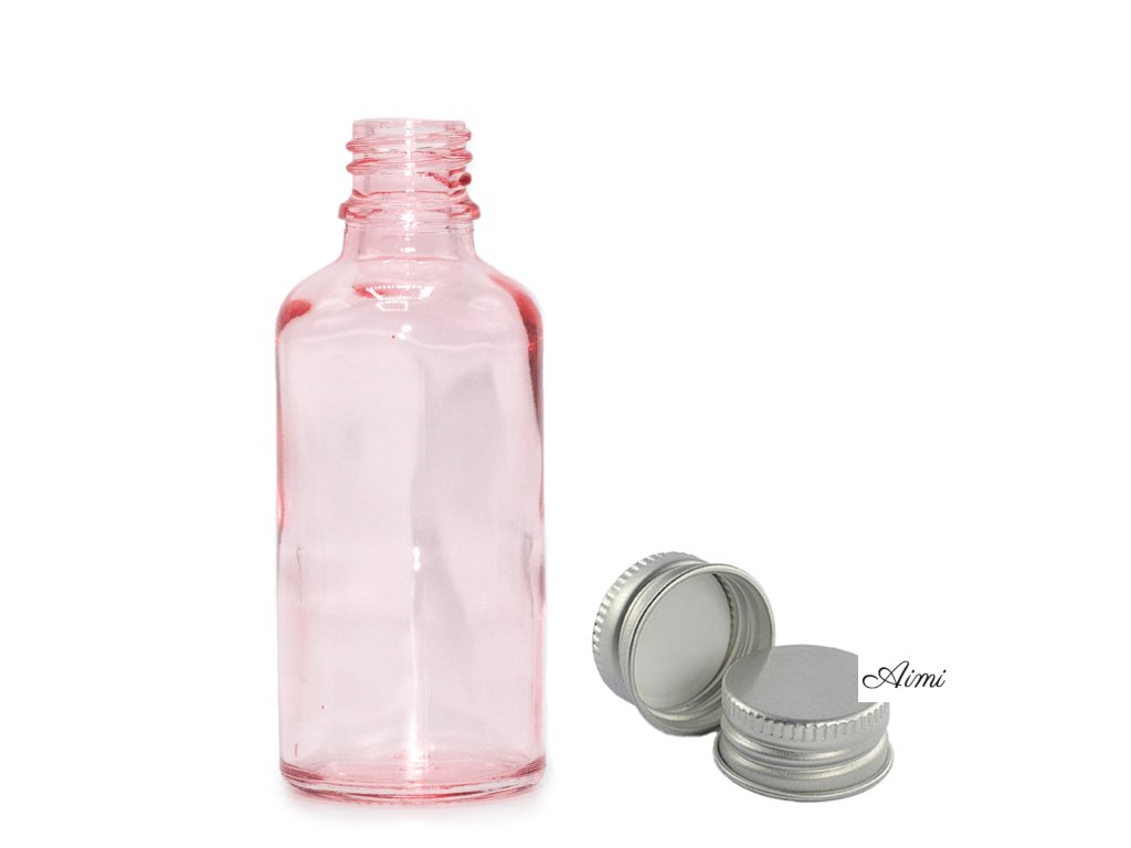 50ml Ružová Sklenená Fľaška s Hliníkovým Uzáverom