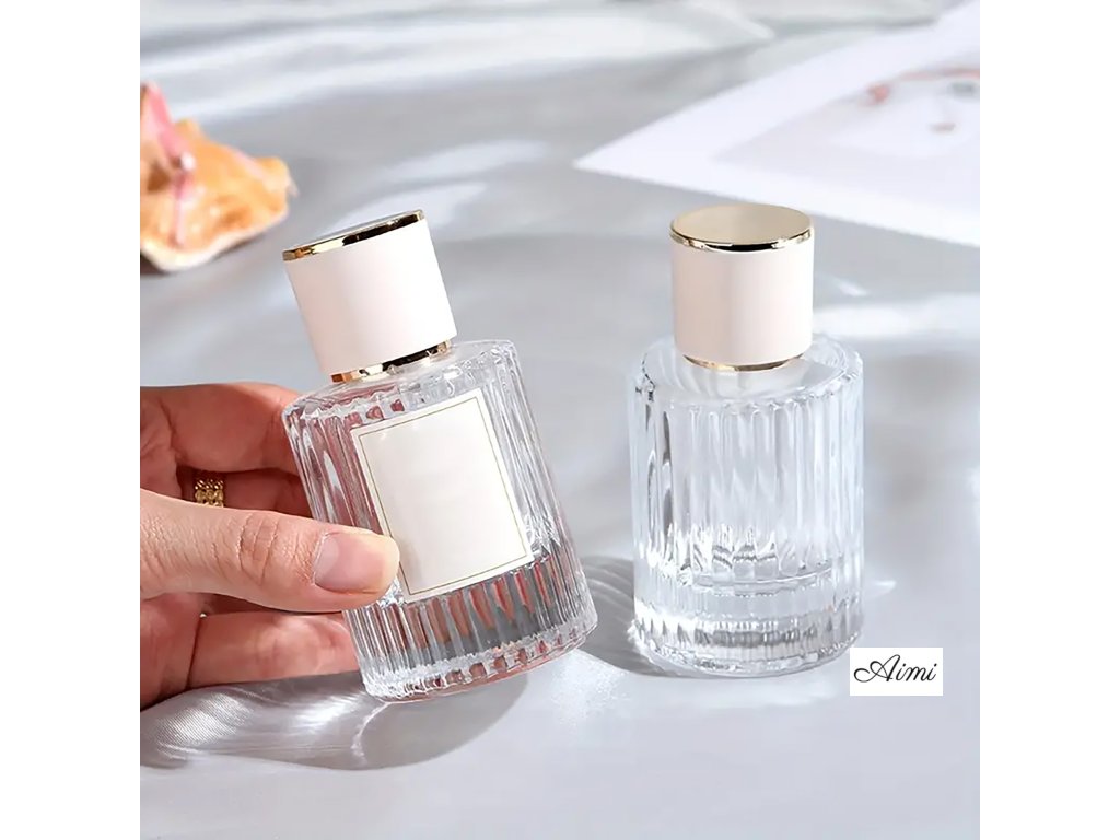 Naše plniteľné sklenené fľaštičky na parfumy sú navrhnuté s ohľadom na sofistikovanosť a eleganciu. Fľaša z číreho skla má krásne textúrovaný povrch doplnený elegantným uzáverom so zlatým akcentom.