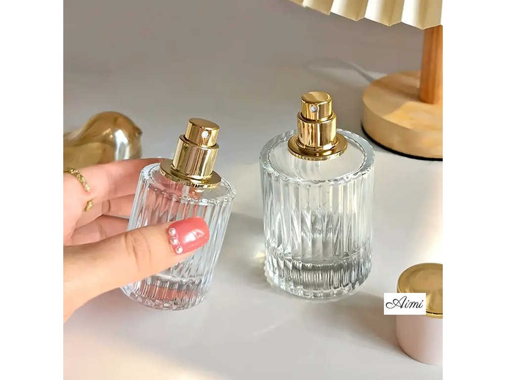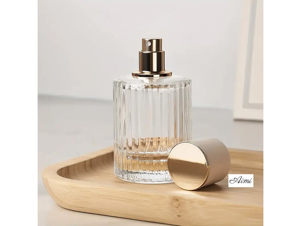 Naše plniteľné sklenené fľaštičky na parfumy sú navrhnuté s ohľadom na sofistikovanosť a eleganciu. Fľaša z číreho skla má krásne textúrovaný povrch doplnený elegantným uzáverom so zlatým akcentom.