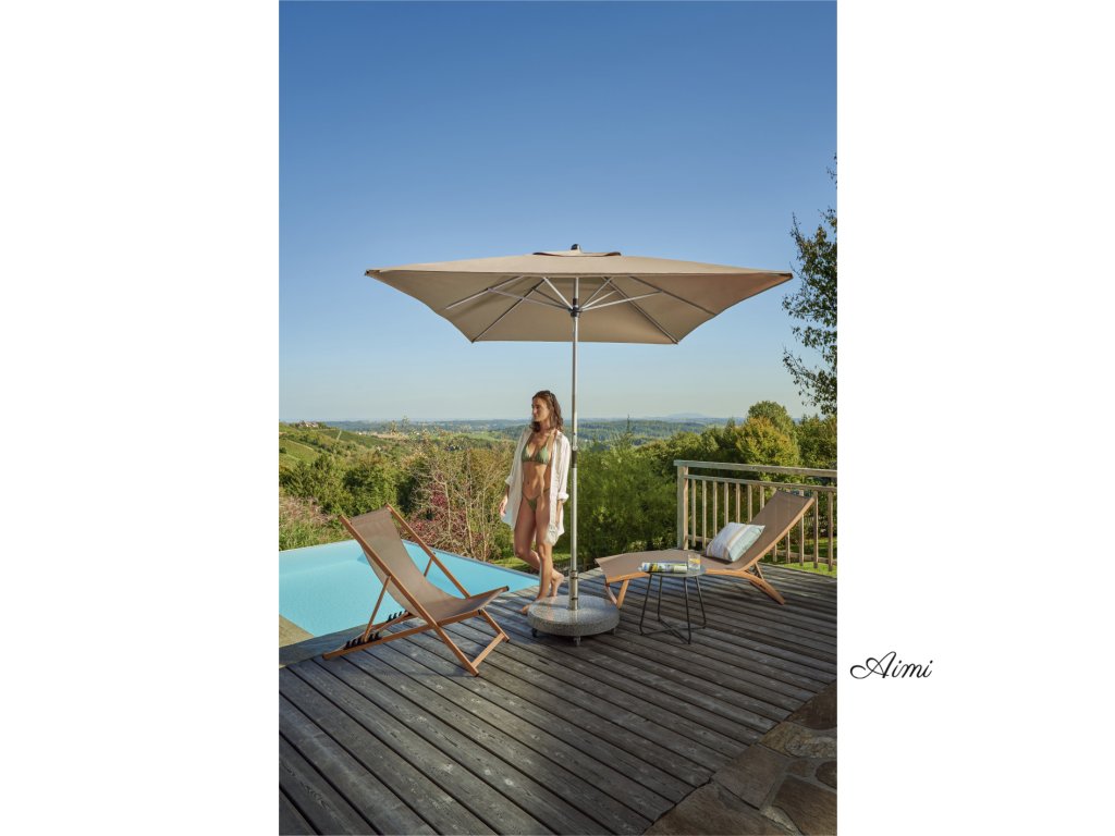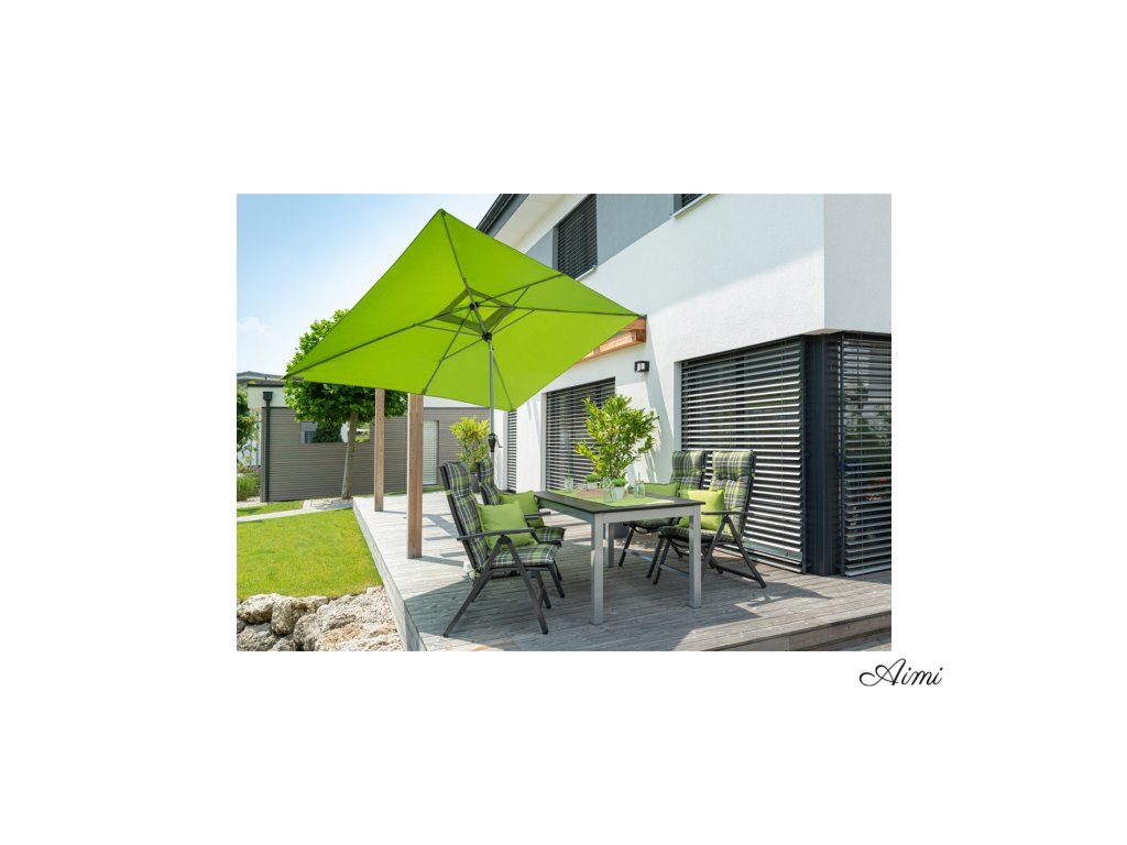 Komfortné funkcie automatického naklápania umožňujú automatické naklápánia strechy jednoduchým otočením kľučky. Poťah slnečníka je vyrobený z polyesterovej tkaniny odolnej proti poveternostným vplyvom s dobrou svetelnou stálosťou a UV ochranou 50+.