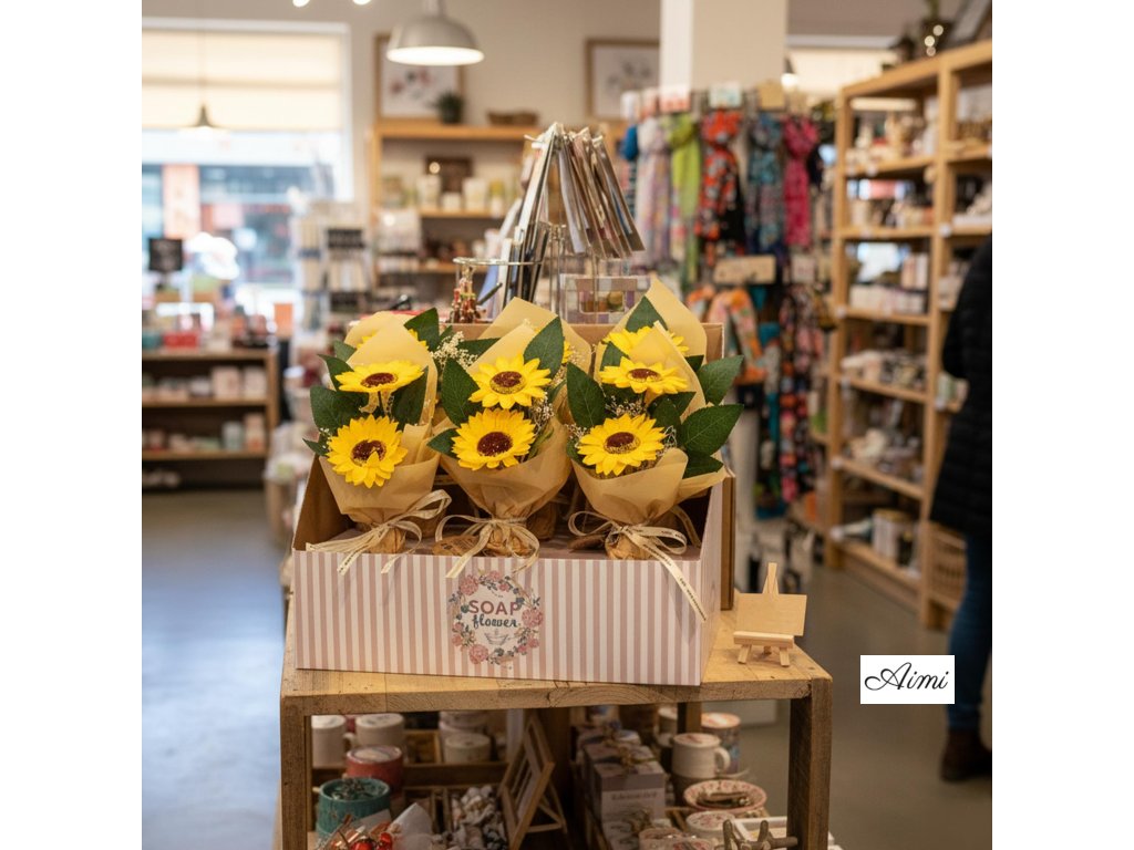 Ideálne ako darček, dekorácia do interiéru alebo na oživenie predajného priestoru – tieto žiarivé mydlové kytice spájajú praktickosť s neodolateľným pôvabom.