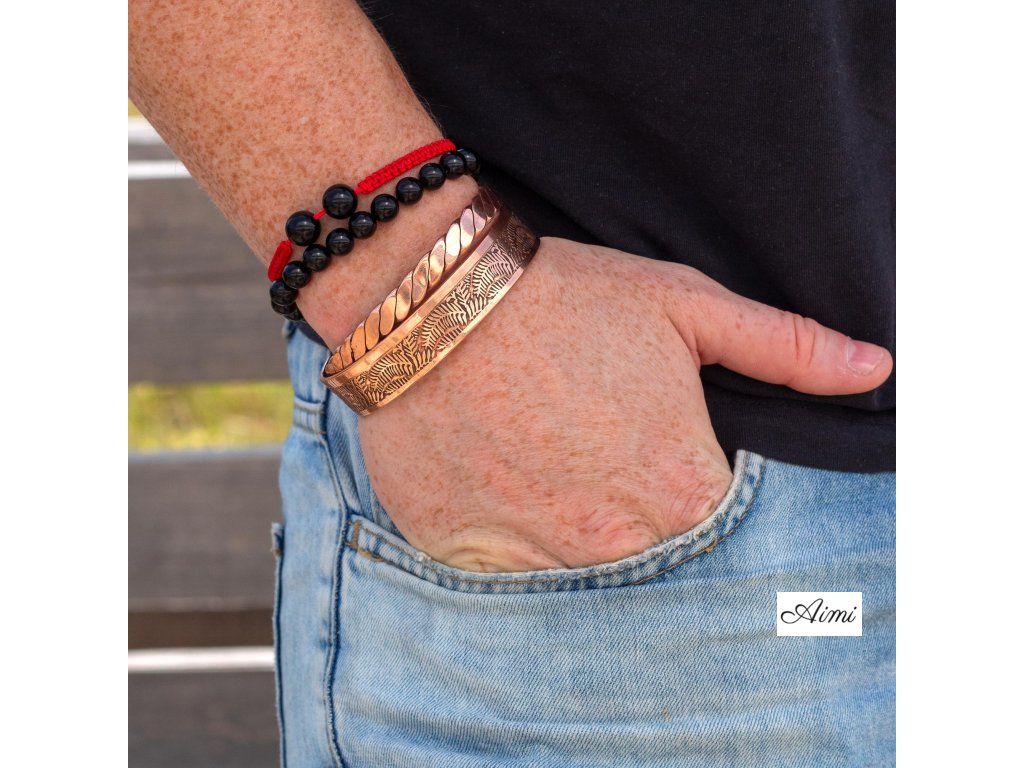 Vyrobené z čistej medi, ktorá je tradične spájaná s podporou prirodzeného energetického prúdenia a celkovej pohody. Otvorený manžetový dizajn je nastaviteľný a pohodlný, vhodný pre väčšinu veľkostí zápästí.
