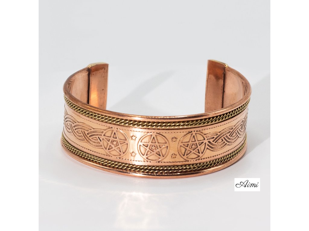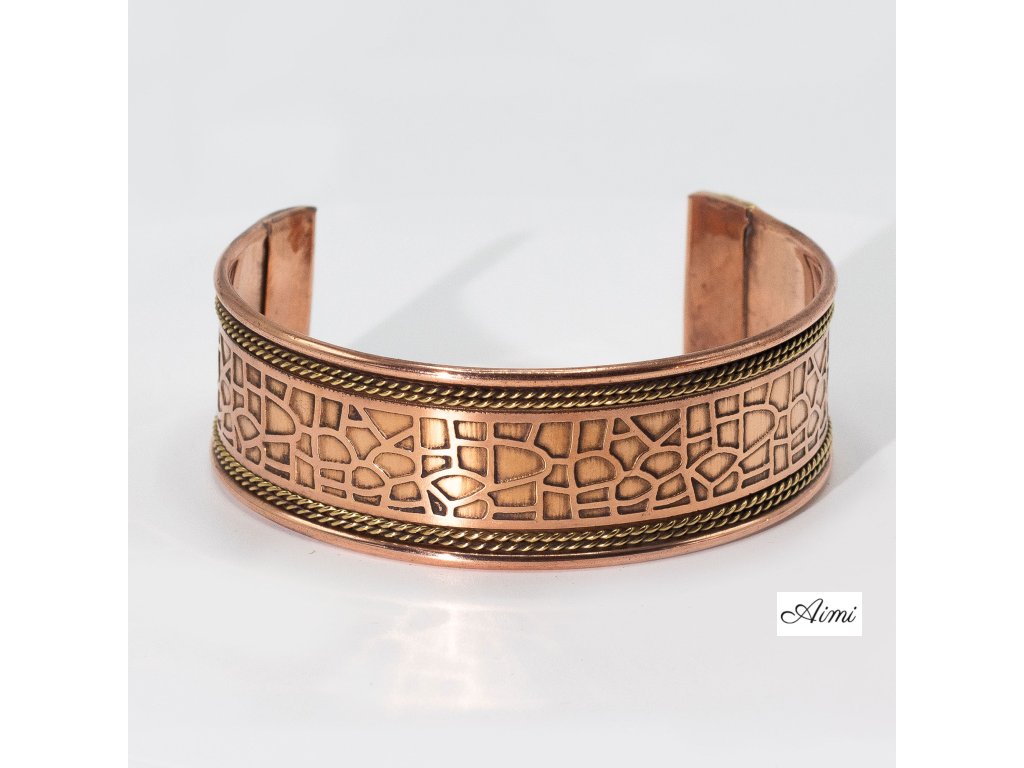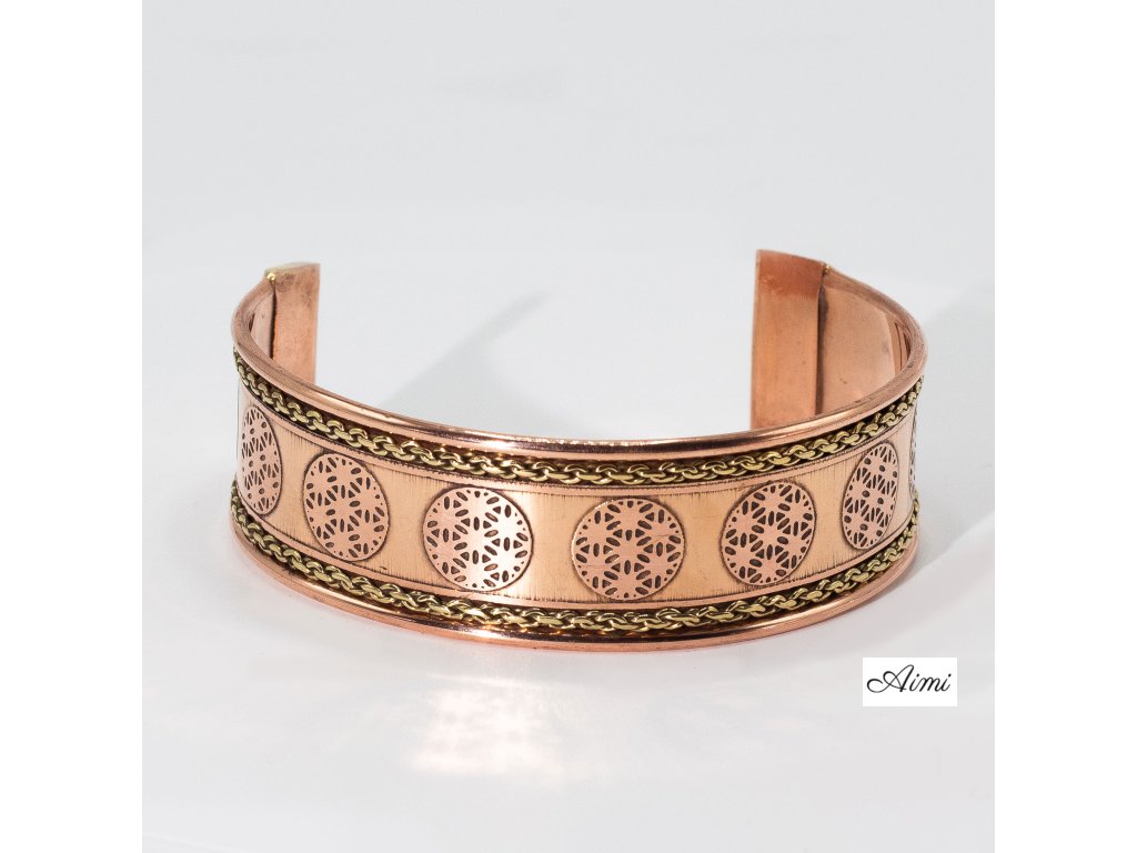 Široké Medené Náramky s Mosadznou Dekoráciou (rôzne druhy)