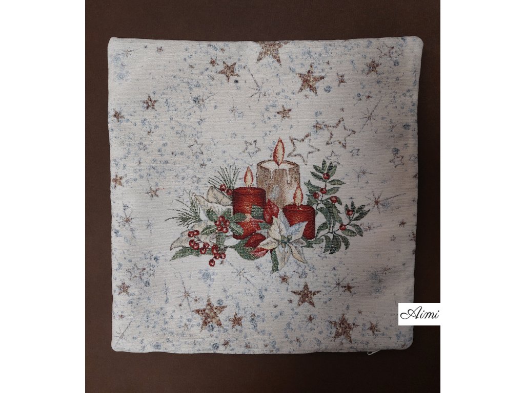 Gobelínový Chenille Vianočný obrus - rôzne rozmery a obliečka na vankúš - Vianočné RUŽE a SVIEČKY