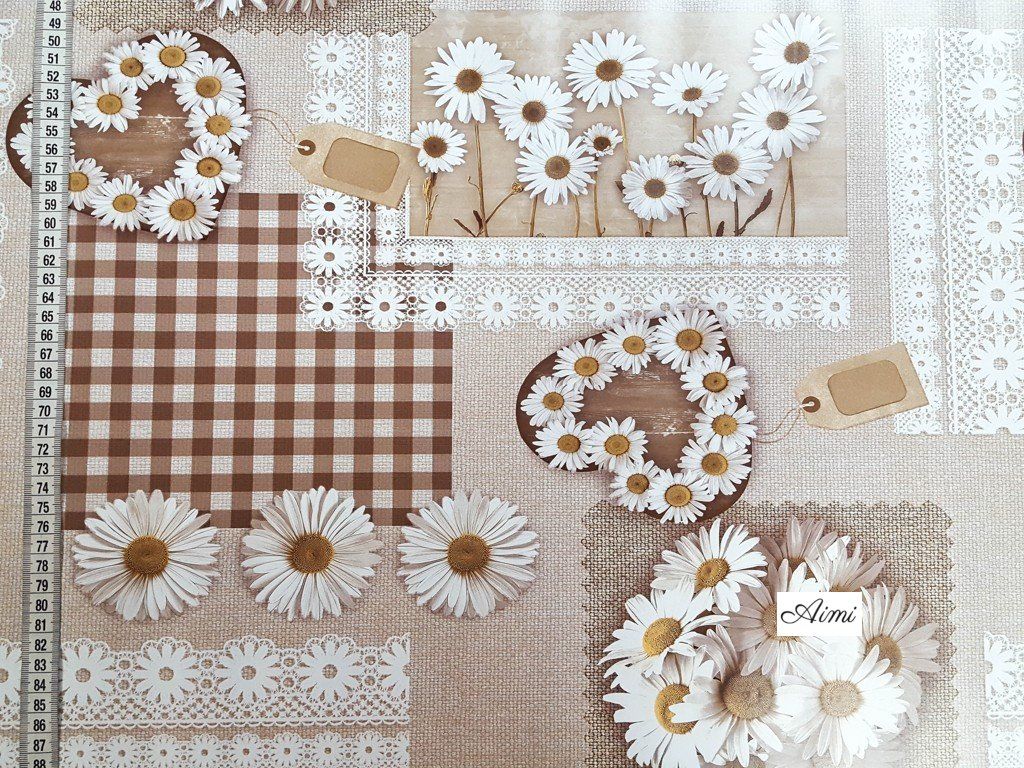 PVC obrus okrúhly - priemer 140 cm fialový motív Margarétky hnedá
