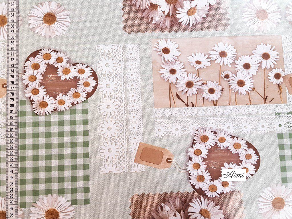 PVC obrus okrúhly - priemer 140 cm fialový motív Margarétky zelená