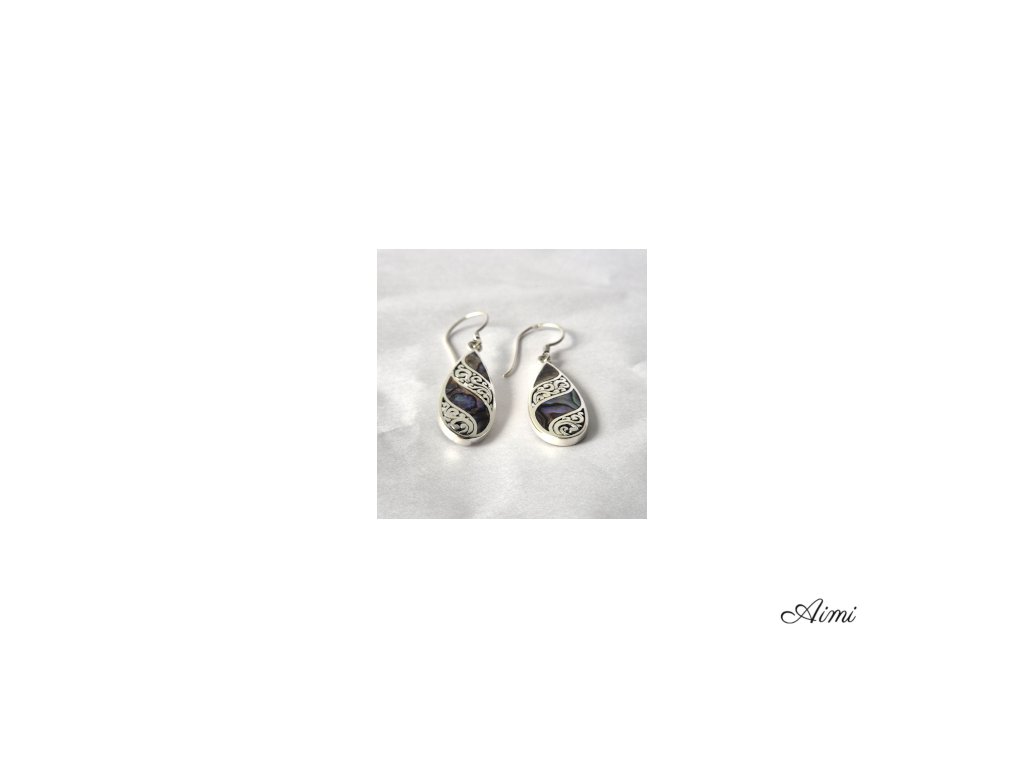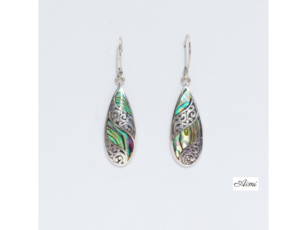 Náušnice Mušľa & Striebro - Dlhá Slza - Abalone