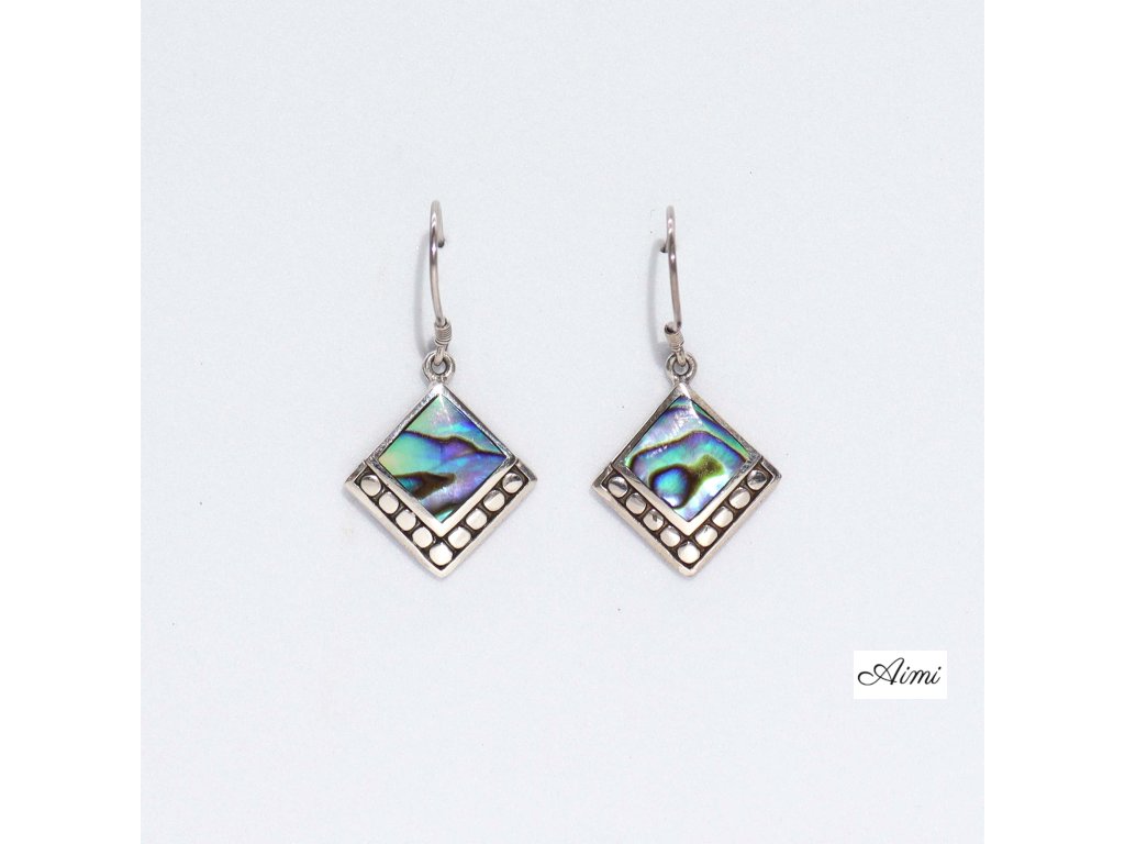Náušnice Mušľa & Striebro - Hranaté Bodky- Abalone