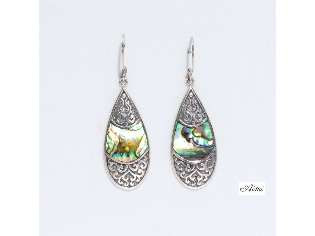 Náušnice Mušľa & Striebro - Slza Ovál - Abalone