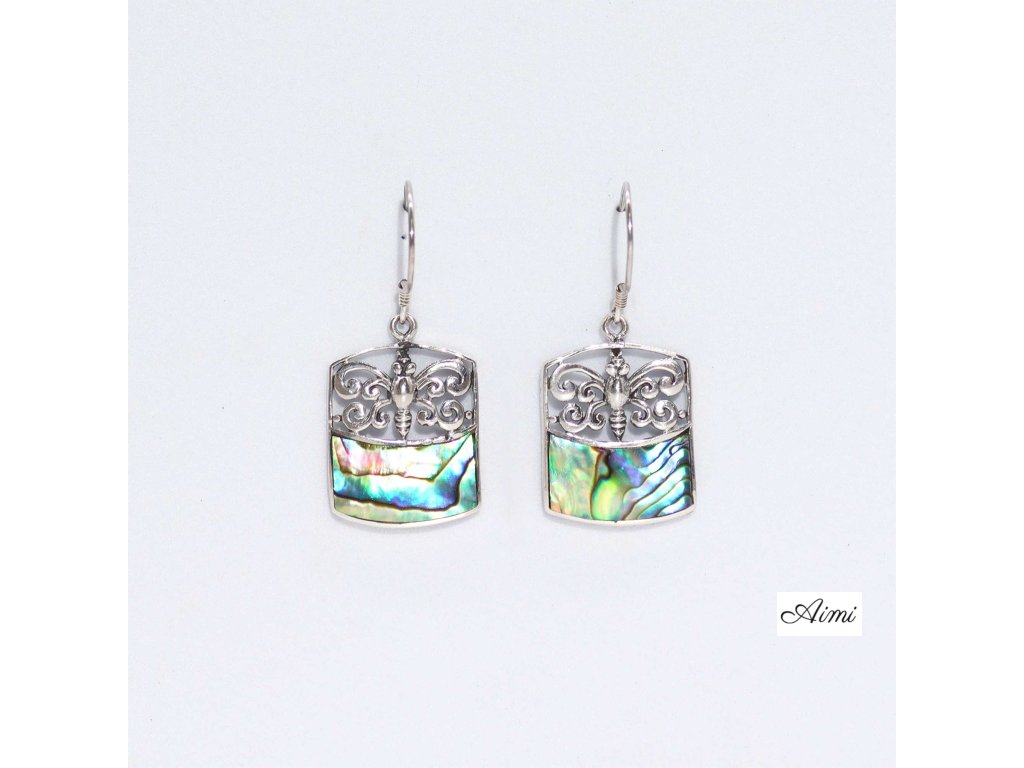 Náušnice Mušľa & Striebro - Vážka - Abalone
