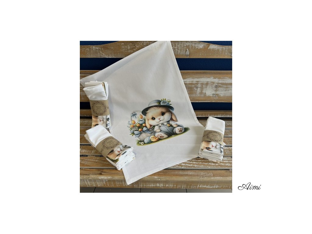 VEĽKONOČNÁ BAVLNENÁ KUCHYNSKÁ UTIERKA SADA 3KS S POTLAČOU - Zajačik s košíčkom