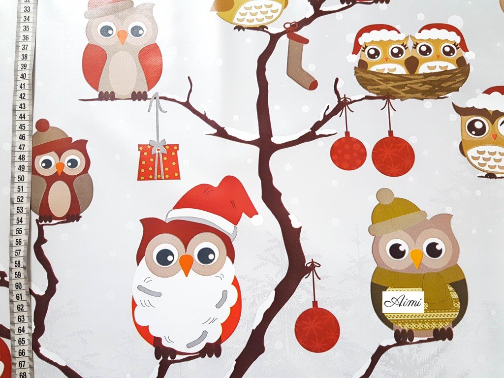 PVC gumený obrus okrúhly 140cm priemer Vianočný motív - SOVIČKY