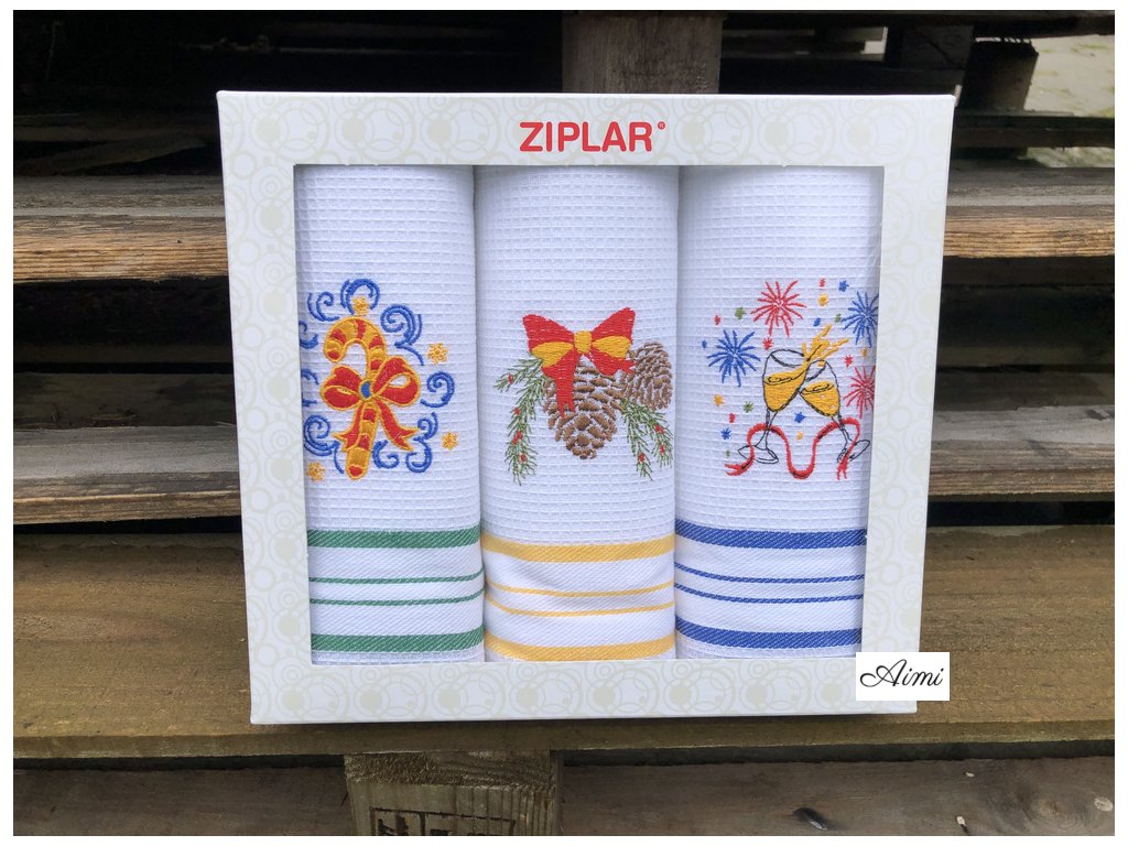 Vianočné Kuchynské utierky SADA 3ks s Vianočnou výšivkou v darčekovom balení ZIPLAR - TYP D
