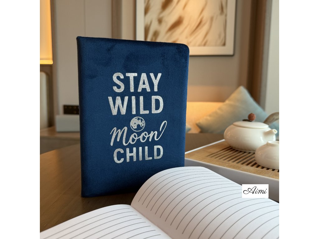 Zamatový Zápisník - 80 strán - Stay Wild Moon Child - Tmavomodrý